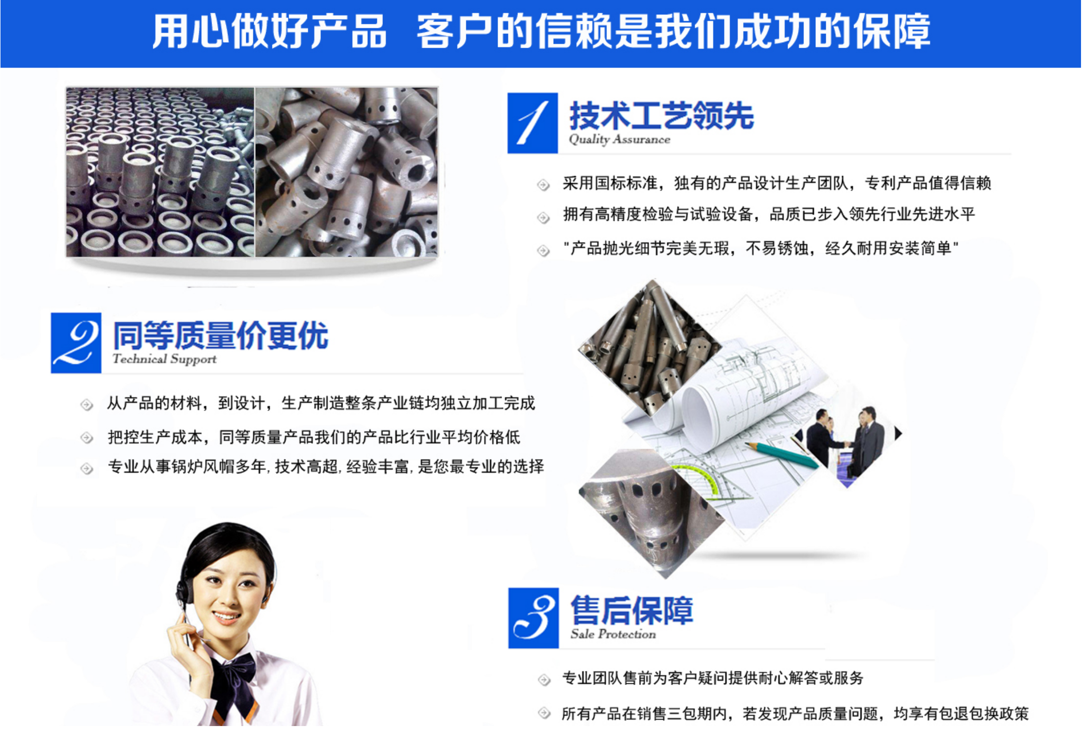 聊城營輝金屬材料有限公司主營鍋爐風帽,流化床風帽,鍋爐鑄鋼風帽,鍋爐風帽廠家等,我廠多年來憑借不斷的行業經驗提升自身的技術實力,在行業中領域達到了一個前所未有的高度,與我廠合作的大中小企業不勝枚舉,我們擁有堅實的技術實力支持,可靠的團隊,使用我廠生產的為您的產品生產安全來保駕護航!  一個合格的產品可以為您帶來質量上的提升,并且保證生產安全更是當中的重中之重。我們更希望客戶能夠選擇我們的產品,讓我們與您共同奮斗。  我們致力于做行業的精英,為您解決所有您需要解決的問題!我們會認真對待每一個產品,保證您可以享受到完美的服務待遇!為您解決麻煩是我們的宗旨!  歡迎各位新老朋友到廠參觀,蒞臨指導,歡迎隨時咨詢本站客服,我們將竭誠為您服務!...